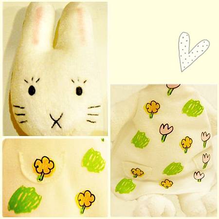 ● 純白的小兔玩偶穿上小花的衣裳,彷彿徜徉在大自然的懷抱呢!